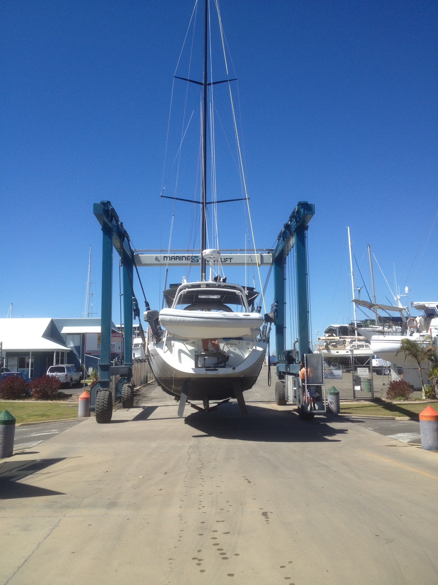 So, we are now in Bundaberg, out of the water at the boatyard and awaiting deliver of a new propeller hub, which turned out to be the culprit. This is not such a bad outcome and will only cost us a few days and a few (quite a few) dollars, but is better than a lot of other things that could have caused this problem. We have been fortunate to be loaned  a car here by a new friend so will enjoy the weekend seeing the sights of Bundaberg and maybe getting in a bit of kite surfing. We hope to leave on Tuesday or Wednesday for Lady Musgrove perhaps? Who knows?