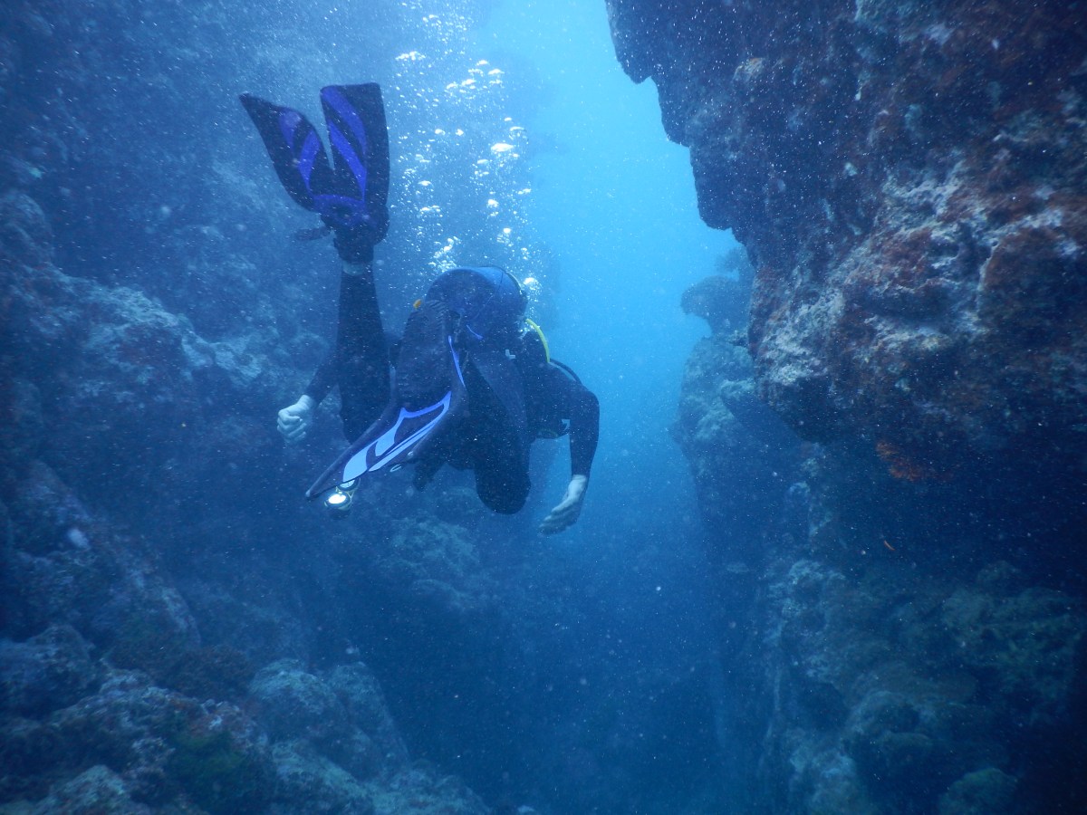 Swimming through a crack in the reef